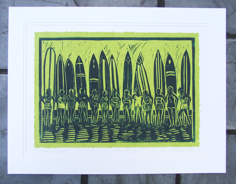 Design printed in blue ink on a vibrant lime green lockta paper.